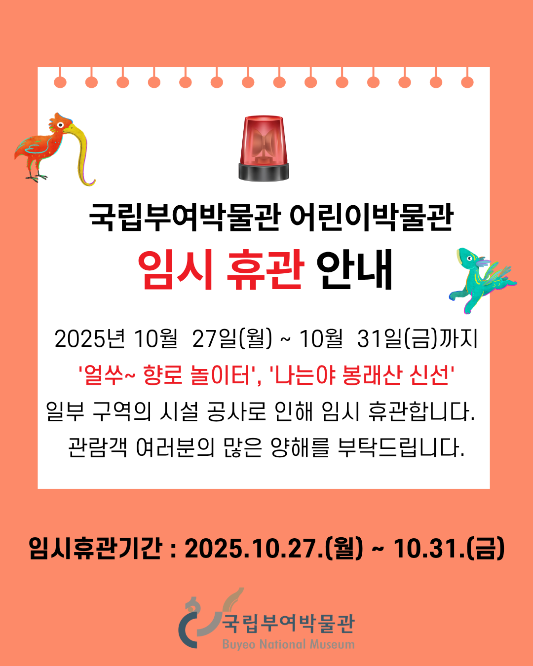 어린이박물관 임시 휴관 안내(10월 27일~31일)